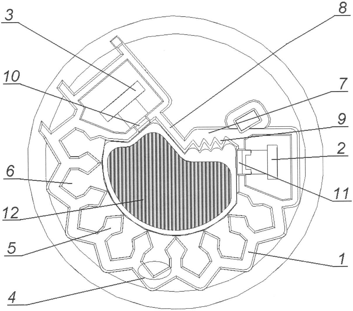 На чертеже представлен общий вид измерительной камеры заявляемого оптического датчика дыма (вид сверху).