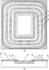 1. Периферия полупроводникового прибора, содержащая периферийный Р-N-переход кольцевого типа, покрытый диэлектрической пленкой и окруженный над диэлектрической пленкой спиральной токопроводящей пленкой с диодами Зенера, у которой концы спирали подсоединены к Р- и N-областям перехода на поверхности полупроводникового прибора, отличающаяся тем, что, с целью нейтрализации влияния зарядов на стабильность обратных утечек и пробивного напряжения, спираль токопроводящей пленки с диодами Зенера имеет расстояние между витками, выбранное из условия: 0,5T>w>K×Uw/Екр.д., где Т – шаг спирали, w – расстояние между витками спирали, Uw – напряжение между соседними витками спирали, Екр.д. – критическая напряженность поля в диэлектрике между витками спирали перед пробоем, К – коэффициент запаса по пробивному напряжению диэлектрика между витками спирали.