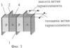 Съем теплоты с горячих коммутационных пластин, а также с близлежащих к ним областей осуществляется за счет принудительного воздушного теплообмена посредством вентилятора 7, а съем теплоты с охлажденных коммутационных пластин и близлежащих к ним областей производится за счет прокачивания жидкости в контактирующем с ними жидкостном теплообменнике 8.