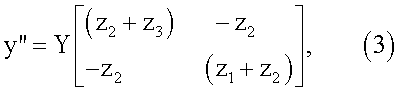 Для Т-образного четырехполюсника, показанного на фиг.1 снизу, матрица проводимостей имеет вид: