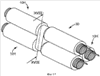 Фиг.22 представляет собой другой вариант осуществления заранее собранного трубчатого контактного узла для сращения кабеля, имеющего свои части внутренней муфты, приспособленные проходить за связанные с ними соответствующие наконечники, намотанные так, чтобы обеспечить два проходящих по окружности рулона или две катушки, размещенные на первом соединителе; и