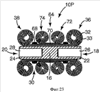 Наконец, фиг.23 показывает еще один вариант осуществления заранее собранного трубчатого контактного узла 10Р для сращения кабеля, аналогичного показанному на фиг.22 и содержащего наружную муфту 64, также навитую на его концах проводящей сеткой 68, размещенной между внутренней и наружной муфтами 30, 64 и собранной между соседними рулонами или витками на каждом конце внутренней и наружной муфт 30, 64. Здесь обе из внутренней и наружной муфт 30, 64 навиты на их соответствующих концах. Рулоны наружной усаживающейся муфты 64 размещены в зоне, образованной рулонами внутренней усаживающейся муфты 30. Обе пары рулонов или по меньшей мере наружная пара рулонов внутренней муфты 30 могут крепиться стопорными элементами, как описано выше для варианта осуществления по фиг.22.