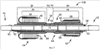 Фиг.21 представляет собой еще один вариант осуществления заранее собранного трубчатого контактного узла для сращения кабеля аналогично фиг.20, причем трубчатые части внутренней муфты, приспособленные проходить за соответствующие связанные с ними наконечники первого соединителя, отогнуты назад и вложены в ее отогнутые назад части, которые удерживаются в расширенном в радиальном направлении состоянии соответствующими опорными сердечниками;