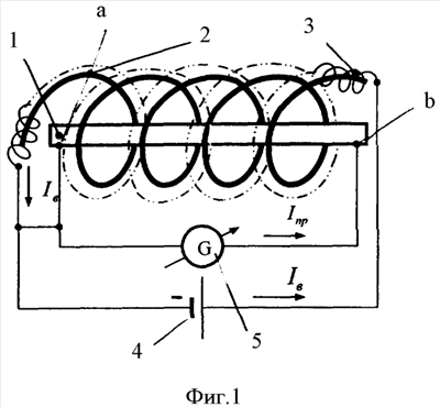 В варианте устройства в качестве сердечника применен соленоид, намотанный на стержень, и концами проводника служат оба конца соленоида.