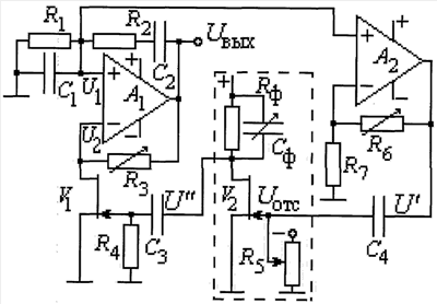 RС-цепь Вина, содержащая резистор R1 и R2 и конденсаторы C1 и С2;