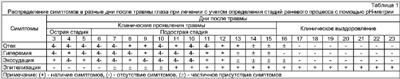 Задачей изобретения является повышение эффективности и укорочение длительности лечения проникающих ранений глаза. Поставленную задачу достигают за счет того, что определяют pH содержимого раны в динамике и при показателях ниже 7,5 проводят лечение, как при острой стадии раневого процесса, а при показателях больше 7,5 – как при подострой стадии.