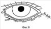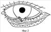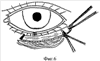 на фиг.2 – отсепаровка кожно-мышечного лоскута до нижнего края орбиты и иссечение треугольного конъюнктивально-хрящевого лоскута (второй этап);