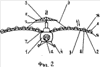 Орнитоптер содержит фюзеляж 1 с подвижными крыльями 2, двигатель (не показан), механизм 3 взмаха крыльев, шасси 4. Фюзеляж выполнен легким, имеет кабину а экипажа, дверь б, окна в. На хвостовой части фюзеляжа установлены рули 5 и 6. Механизм взмаха крыльев имеет штангу г, имеющую возможность вертикального возвратно-поступательного движения, и жесткие звенья д, соединяющие шарнирами е штангу с рамой ж крыльев. Крылья имеют возможность свободного поворота на оси 7, закрепленной на фюзеляже. В качестве привода механизма взмаха крыльев может быть использован кривошипно-шатунный механизм (не показан), кинематически связанный с двигателем, например компактным двигателем Ванкеля. Каждое крыло состоит из группы закрепленных на раме и отстоящих один от другого желобов 8. Форма крыла может быть изогнутой (фиг.2), прямой или частично изогнутой (не показаны). Все элементы крыла выполнены из легких, устойчивых к атмосферной коррозии материалов. Рама для повышения прочности имеет ребра з жесткости. Желоба выполнены тонкостенными, полученными, например, из пластмассы, легкого металла методом прессования. Желоба на раме установлены вдоль фюзеляжа. В поперечном сечении желоб имеет форму полуокружности. Каждый желоб состоит из 1/4 сферы и, полуцилиндра к и концевой части л, которая может быть загнута вверх (фиг.1-4) или выполнена с расширением в виде 1/2 усеченного конуса (фиг.5, 6). В случае выполнения концевой части в виде усеченного конуса желоб имеет переменное поперечное сечение. Выпуклая сторона желоба обращена вверх. Рули на хвостовой части фюзеляжа выполнены с возможностью свободного поворота на оси м, например, на угол 0-45° (вверх и вниз) по отношению к горизонтали.