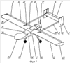 Вертикальное оперение выполнено в виде двух наклонных килей 8 с рулями направления 9 и размещено на концах хвостовых балок 5, между которыми установлено горизонтальное оперение, выполненное в виде стабилизатора 6 с рулем высоты 7. Наклон килей 8 обеспечивает компенсацию реактивного момента, возникающего при работе двигателя.