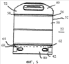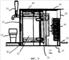 Домашнее устройство разлива пива 10 имеет переднюю стенку 12 и распределительный вентиль 14, выступающий вперед от передней стенки 12. Каплеулавливающий поддон 16 также выступает вперед от передней стенки 12 и выполнен с возможностью удержания открытой стеклянной тары 18 под распределительным вентилем 14. Домашнее устройство разлива пива 10 имеет, кроме того, основание 21, приспособленное для размещения на стойке бара в кухне. Передняя стенка 12 выполнена в виде продолжения двух выполненных с возможностью поворота боковых стенок 20, которые можно перемещать между закрытым и открытым положениями, для того чтобы емкость или бочонок 22 (изображен на фиг.2 прерывистыми линиями) можно было вставлять в корпус домашнего устройства разлива пива 10. Корпус домашнего устройства разлива пива 10 также включает в себя верхнюю стенку 24 и заднюю стенку 26. Задняя стенка 26 имеет решетку 30, позволяющую воздуху циркулировать внутри устройства разлива 10. Через заднюю стенку 26 устройства 10 проходит электрический шнур 32 для обеспечения соединения с питанием от электрической сети и подачи электрической энергии электрическим компонентам, заключенным в корпусе устройства 10. В качестве альтернативы можно использовать источник питания постоянного тока с напряжением 12 вольт.