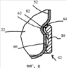На фиг.5 и 8 цилиндрическая боковая стенка 50 бочонка 22 имеет нижнюю концевую часть 60 с диаметром D2. Цилиндрическая боковая стенка 50, кроме того, имеет второй кольцевой паз 62, который проходит по цилиндрической боковой стенке 50 вокруг нее. Второй кольцевой паз 62 отделяет нижнюю торцевую часть 60 от центральной части 52 поверхности стенки. Второй кольцевой паз 60 имеет верхний выступающий заплечик 64, который прилегает к центральной части 52 поверхности стенки и переходит в нее.