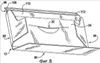 Нижняя створка 30 содержит приемный паз 84, образованный в ее передней панели 82. На фиг.4 показано верхнее отделение 14, причем конец 20 закрывающего клапана 18 введен в приемный паз 84 на передней панели 82 верхнего отделения 14. Легко можно понять, что этот паз 84 может быть использован для закрывания упаковки только в том случае, когда нижнее отделение 16 было удалено.