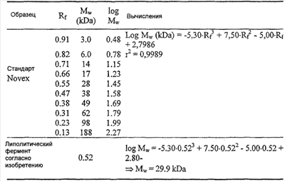 Так, например, в патенте ЕР 0585988 было заявлено, что добавление липазы в тесто обеспечивает положительный эффект против черствения. Было высказано предположение, что липаза, полученная из Rhizopus arrhizus, при ее добавлении в тесто, может повышать качество выпеченного хлеба, если она используется в сочетании с шортенингом/жиром. В заявке WO94/04035 сообщается, что повышение мягкости хлеба может быть достигнуто путем добавления липазы в тесто без добавления в это тесто дополнительного количества жира/масла. В публикации Castello, P.ESEGP 89-10 Dec. 1999 Helsenki, было показано, что экзогенные липазы могут модифицировать объем хлеба.