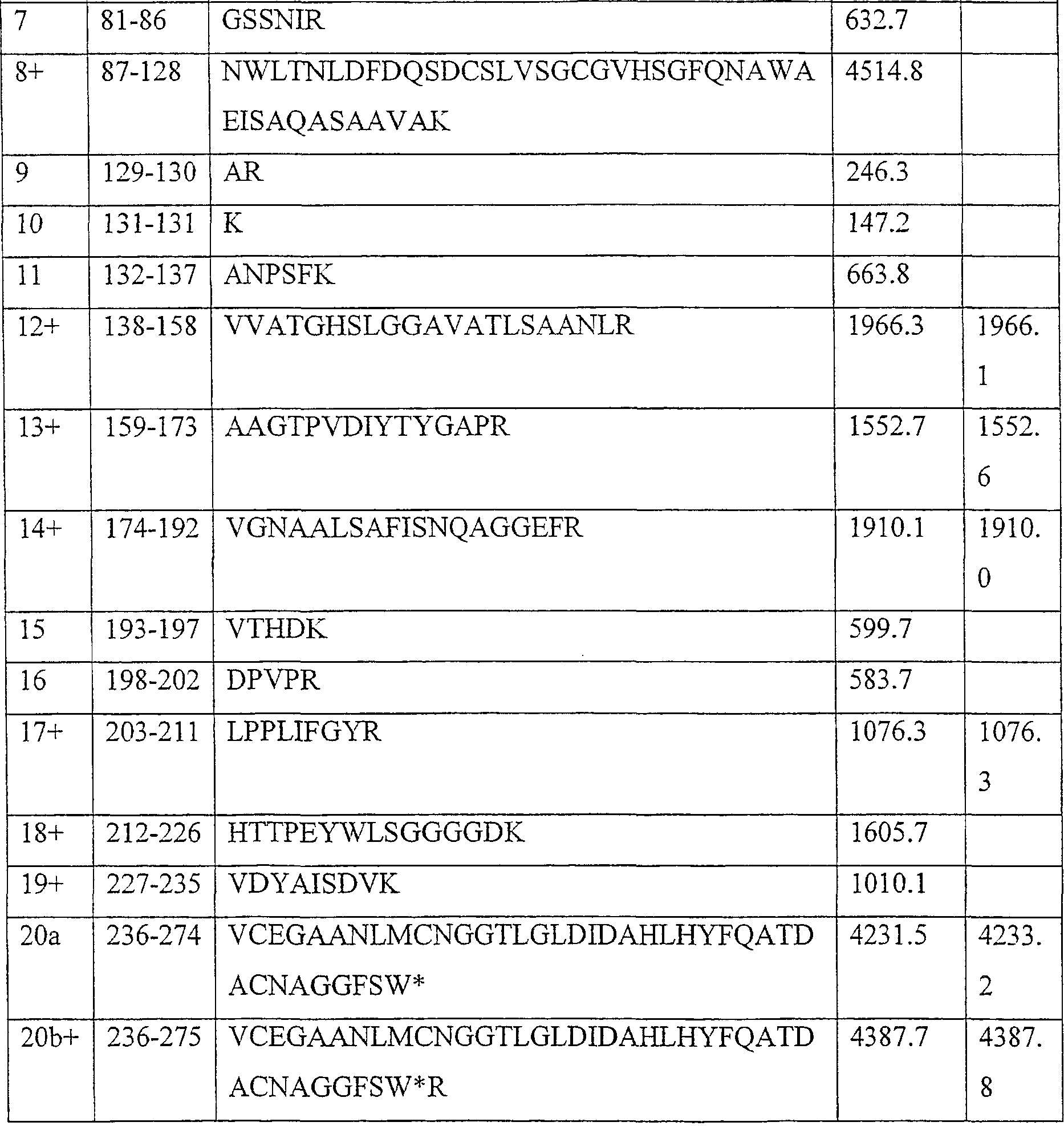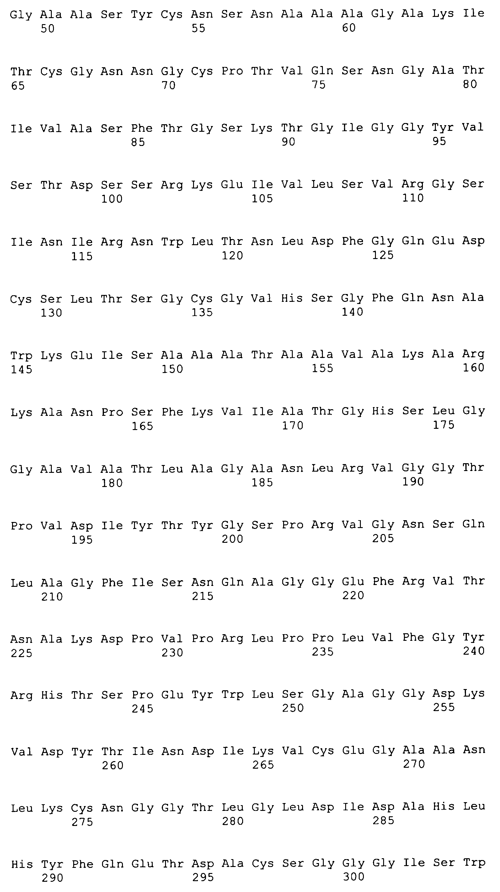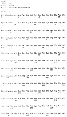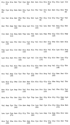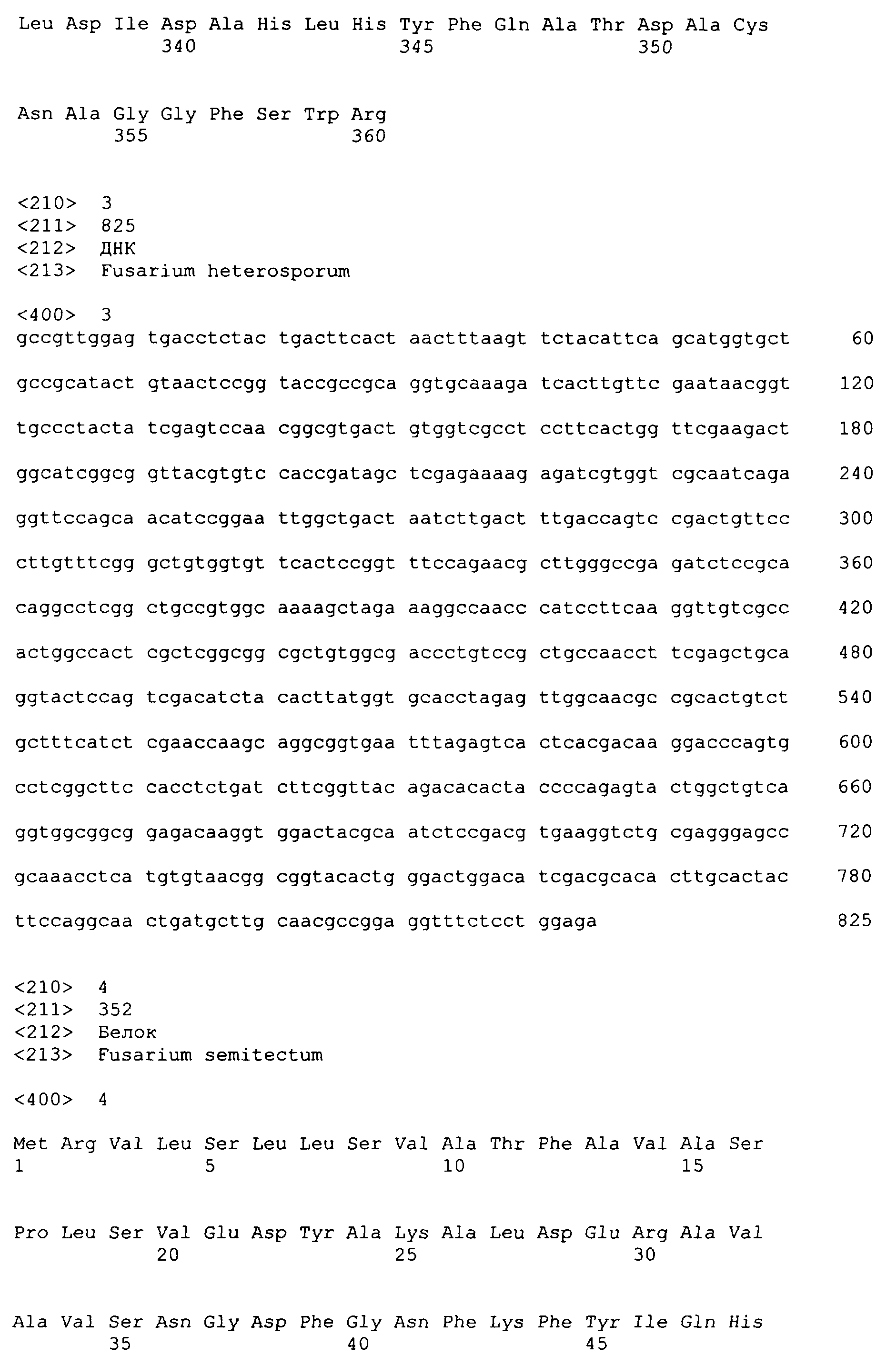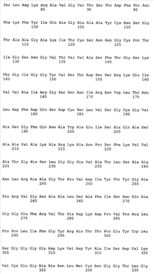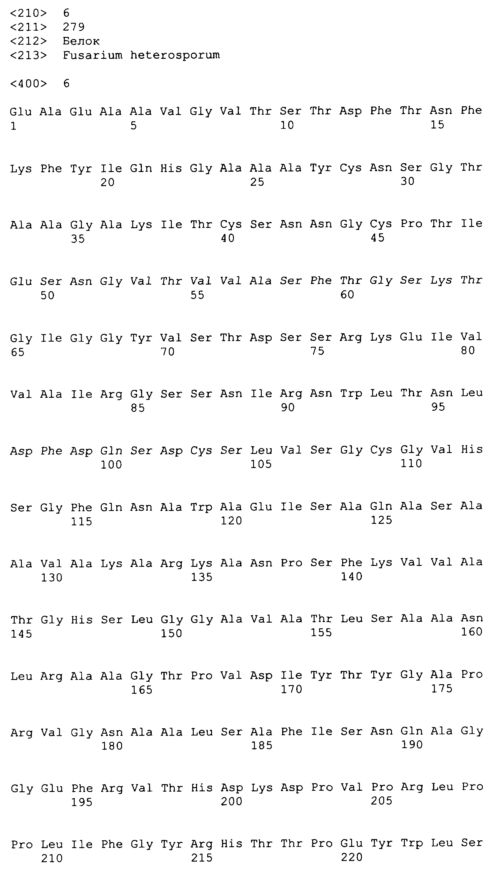 Другие аспекты настоящего изобретения, относящиеся к аминокислотной последовательности, используемой в настоящем изобретении, включают конструкцию, содержащую аминокислотные последовательности, используемые в настоящем изобретении; вектор, кодирующий аминокислотные последовательности, используемые в настоящем изобретении; плазмиду, кодирующую аминокислотные последовательности, используемые в настоящем изобретении; трансформированную клетку, экспрессирующую аминокислотные последовательности, используемые в настоящем изобретении; трансформированную ткань, экспрессирующую аминокислотные последовательности, используемые в настоящем изобретении; трансформированный орган, экспрессирующий аминокислотные последовательности, используемые в настоящем изобретении; трансформированный хозяин, экспрессирующий аминокислотные последовательности, используемые в настоящем изобретении; трансформированный организм, экспрессирующий аминокислотные последовательности, используемые в настоящем изобретении. Настоящее изобретение также охватывает способы очистки аминокислотной последовательности, используемой в настоящем изобретении с применением способа экспрессии этой последовательности, такой как экспрессия в клетке-хозяине, включая способы переноса этой последовательности с ее последующей очисткой.