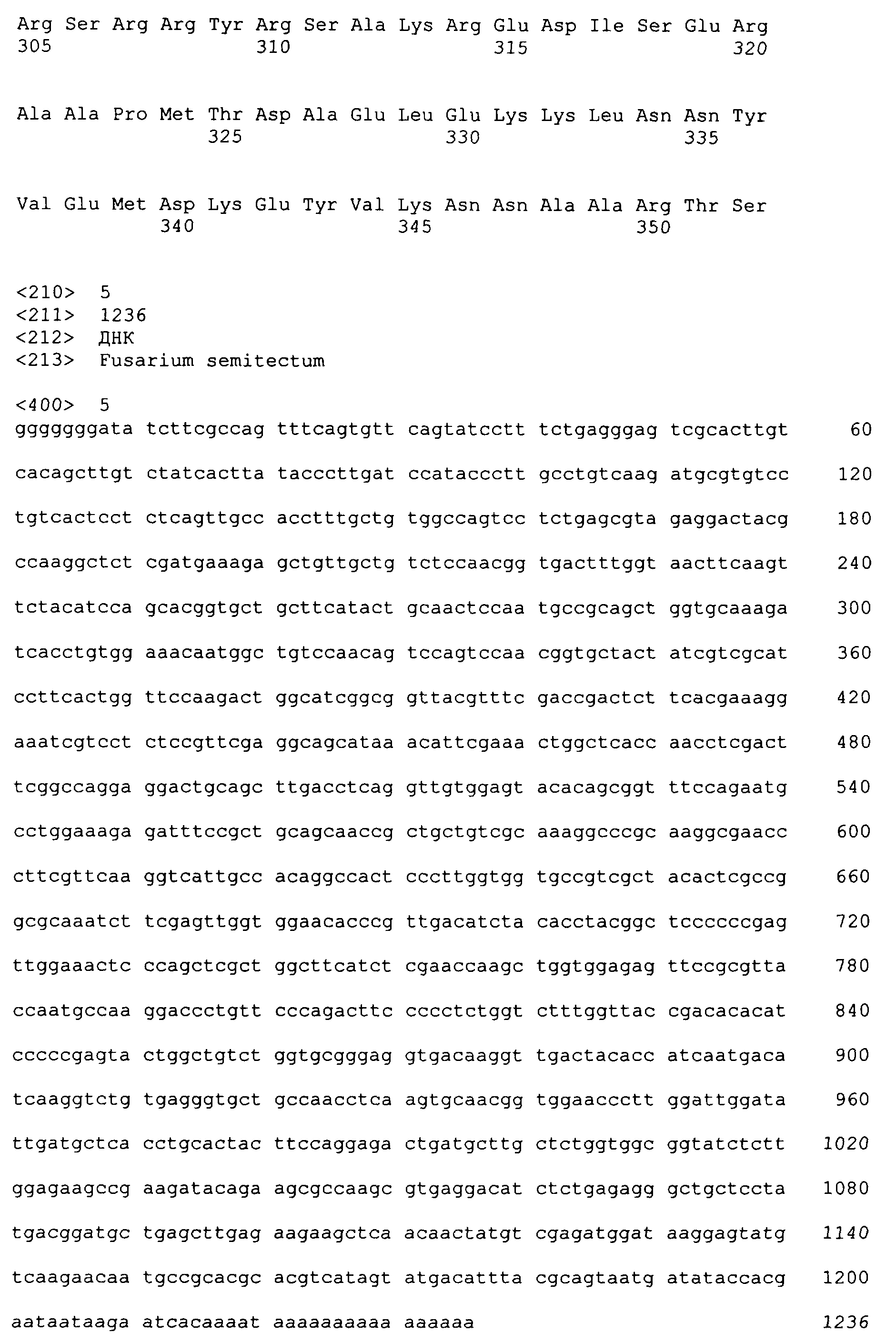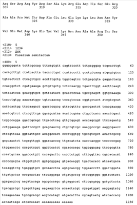 Другие аспекты изобретения, относящиеся к нуклеотидным последовательностям, которые могут быть использованы в настоящем изобретении, включают конструкцию, содержащую последовательности согласно изобретению; вектор, содержащий последовательности, используемые в настоящем изобретении; плазмиду, содержащую последовательности, используемые в настоящем изобретении; трансформированную клетку, содержащую последовательности, используемые в настоящем изобретении; трансформированную ткань, содержащую последовательности, используемые в настоящем изобретении; трансформированный орган, содержащий последовательности, используемые в настоящем изобретении; трансформированного хозяина, содержащего последовательности, используемые в настоящем изобретении; трансформированный организм, содержащий последовательности, используемые в настоящем изобретении. Настоящее изобретение также относится к способам экспрессии нуклеотидной последовательности, используемой в настоящем изобретении, например, экспрессии в клетке-хозяине, включая способы переноса этой последовательности. Настоящее изобретение также относится к способам выделения нуклеотидной последовательности, таким как выделение последовательности из клетки-хозяина.