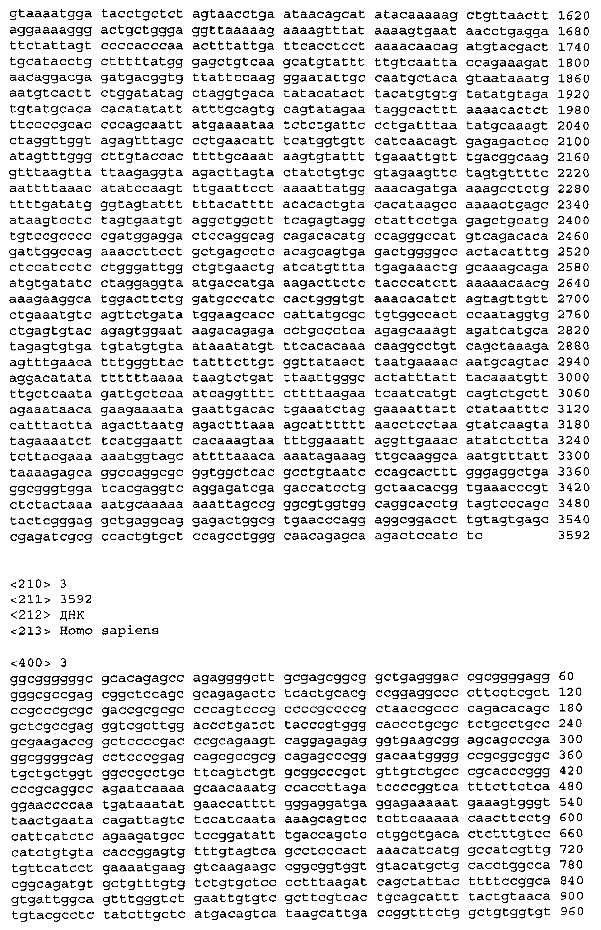 Полинуклеотидная последовательность в 5’/3′-структуре 3′-конца кДНК человеческого гена PAR1. Представленная последовательность идентична SEQ ID 10.