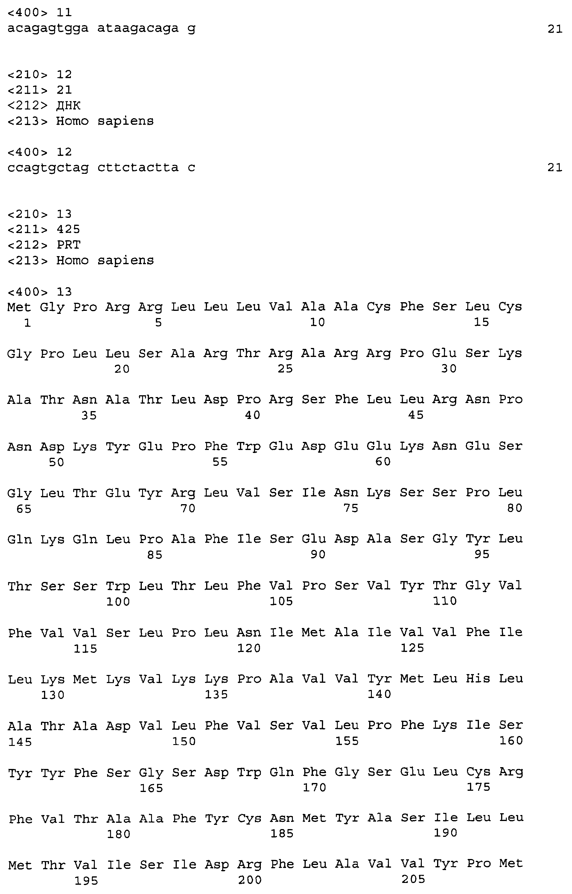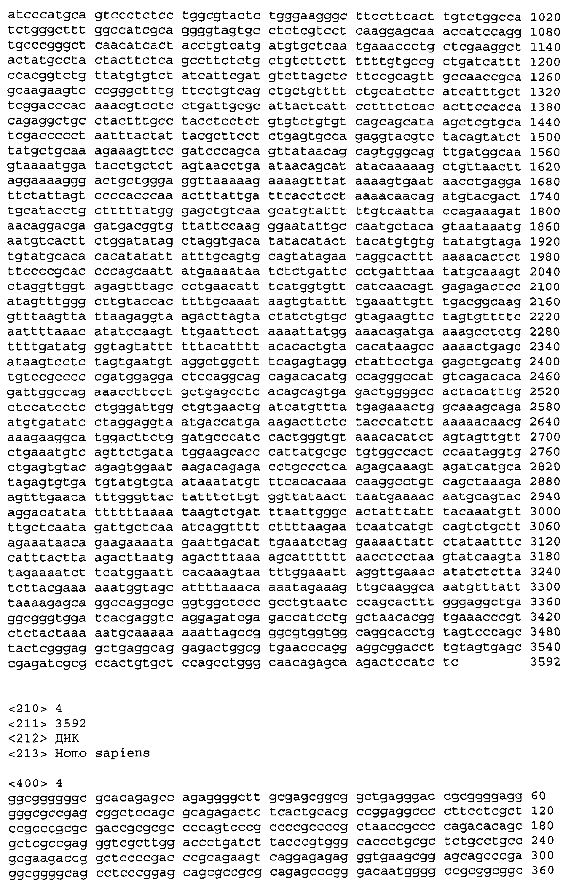 Полинуклеотидная последовательность в 5’/3′-структуре 5′-конца кДНК человеческого гена PAR1. Представленная последовательность идентична SEQ ID 9.