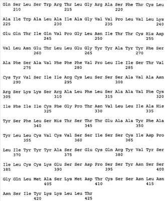 Белковая последовательность человеческого рецептора PAR1. Последовательность соответствует последовательности, известной под номером NP_001983 базы данных по белкам NCBI. Представленная последовательность идентична SEQ ID 13.