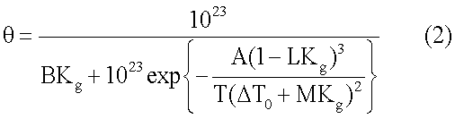 Имея в виду выражение (1), координата Т в зависимостях Таммана может быть заменена на Kg (фиг.1). Отсюда следует, что создав значения Kg, равные Kopt, будет выращена моно- или квазимоноструктура из расплава с произвольным начальным количеством зародышей, кластеров с теоретически возможной скоростью. Так, в некоторых экспериментах авторы имели дело при выращивании монокристалла арсенида галлия со скоростью 10-15 см/с.