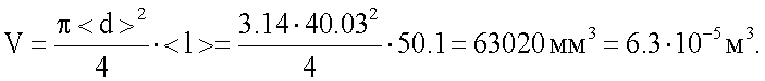 l1=50.5, l2=49.7 мм и определяли среднюю длину: с погрешностью ±0.1 мм. Находили объем V образца: