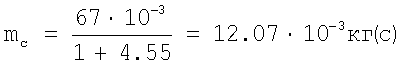 где mc – масса сухого вещества во влажном торфе, определяют по формуле