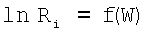 mc – масса сухого вещества, после чего строят графические зависимости логарифма прочности Ri в функции обратной плотности сухого вещества торфа и логарифм прочности Ri в функции влагосодержания W с соответствующими угловыми коэффициентами линейных участков графической зависимости периодов структурообразования ci и i (i=1,2), где