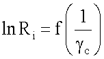 Для определения коэффициентов c1 c2 в формулах (6) и (7) строили зависимость логарифма прочности ln Ri от обратной плотности сухого вещества. при Т=293К.
