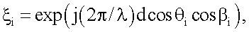 2. Получают комплексные амплитуды сигналов на выходах антенн (вектор амплитудно-фазового распределения (АФР)). m-й элемент вектора АФР имеет вид