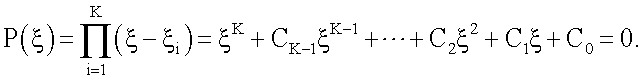 Определив из системы (7) С0, С1, , СK-1, получаем полином экспоненциальных функций P( ) в явном виде. Далее находим корни полинома (параметры) экспоненциальных функций i, i=1; 2; ; K.