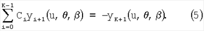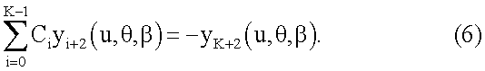 Для определения коэффициентов Ci, i=0; 1; ; K-1 построим систему линейных алгебраических уравнений (СЛАУ) с K неизвестными. Умножим первые K+1 уравнений системы (4) на C0, C1, , CK-1 и 1 соответственно и сложим их