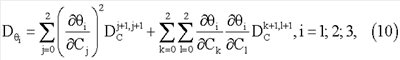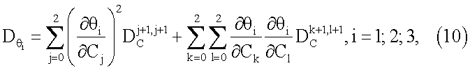 Исходя из формулы (9), можно утверждать, что i= i(C0,C1,C2), i=1;2;3. Для нахождения дисперсии пеленгов i воспользуемся следующей формулой [3, с.388]: