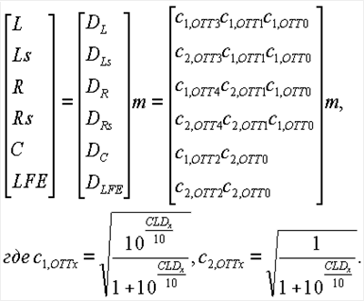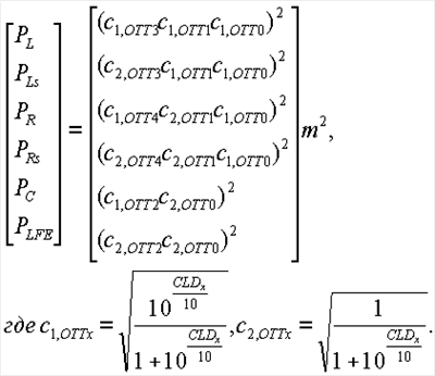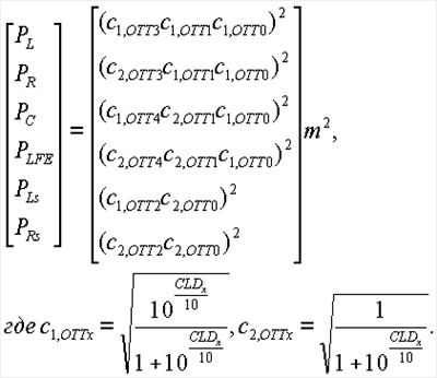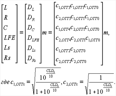 В случае формирования 2-канального сигнала R’ и L’ с помощью 5-канального сигнала или в случае не включения сигналов канала объемного звучания Ls или Rs в сигнал центрального канала C’ HLs_C или HRs_C становится равным 0.