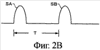 На фиг.2А и фиг.2В схематично показаны графики колебаний, используемые для описания операции детектирования темпа блока 7 детектирования темпа ходьбы. На этих графиках по горизонтальной оси представлена ось времени, и по вертикальной оси представлено значение детектируемого ускорения или вибрации. Датчик генерирует форму колебаний Sa, Sb, как показано на фиг.2А, когда тело пользователя, на котором надето устройство воспроизведения музыки в соответствии с данным вариантом воплощения, движется вверх и вниз. Например, форма колебаний Sa представляет собой форму колебаний, которая генерируется, когда одна нога касается земли, и форма Sb колебаний представляет собой форму колебаний, которая генерируется, когда другая нога касается земли.