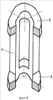 Однако такая конструкция за счет наличия стыковых поверхностей между стержнями и ярмами увеличивает потери в магнитной системе и расход электрической энергии, так как требует увеличения намагничивающего тока и, следовательно, намагничивающей мощности, что существенно снижает технико-экономические показатели устройства. Стыковая конструкция уменьшает надежность устройства. Выполнение ярм магнитной системы в виде полой треугольной призмы с остро выполненными внутренними ребрами также ухудшает технико-экономические показатели устройства, так как резкие изгибы ферромагнитной ленты на углах создают опасность возникновения повышенных напряжений и тем самым повышение тока намагничивания. В случае выполнения ярм у аморфной электротехнической стали, особо чувствительной к механическим напряжениям, значительно увеличиваются потери в ней, ухудшается ее магнитная характеристика.