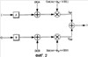 Фиг.3 – блок-схема первого варианта осуществления блока предыскажений IQ-модулятора в соответствии с настоящим изобретением на основе уравнений (3)-(5). В этом варианте осуществления использовано только 2 отвода фильтра (M=l) в целях наглядности чертежей. Тем не менее, принимается во внимание, что возможно большее количество отводов фильтра в практическом варианте осуществления. I-компонента умножается на отвод gI0 фильтра, значение которого зависит от величины самой I-компоненты. I-компонента также пересылается на элемент D задержки, и задержанный сигнал умножается при помощи отвода gI1 фильтра, значение которого зависит от значения самой задержанной I-компоненты. Умноженные сигналы затем суммируются. I-компонента обрабатывается сходным способом посредством отводов фильтра gIQ0, gIQ1. Однако результирующий сигнал не сохраняется в I-ветви. Вместо этого он перекрестно ответвляется в Q-ветвь, где он добавляется к Q-компоненте после того, как последняя отфильтрована отводами фильтра gQ0, gQ1. Сходным образом, перекрестно ответвленный сигнал из Q-ветви суммируется с отфильтрованной I-компонентой. В заключение, смещения dcI, dcQ добавляются к I и Q-ветвям соответственно.