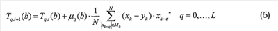 N – количество входных выборок опорного сигнала x в пакете выборок, которые имеют амплитуду, попадающую в интервал Mb вблизи центральной амплитуды элемента b,