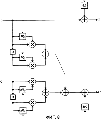 Фиг.8 – блок-схема третьего варианта осуществления устройства предыскажений IQ-модулятора в соответствии с настоящим изобретением.