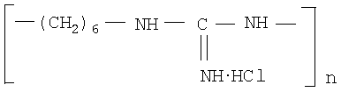 Изобретение относится к сельскому хозяйству, а точнее к способам обработки растений широкого спектра сельскохозяйственных культур, и может быть использовано для опрыскивания растений по зеленой массе при их выращивании в агрокомплексах, приусадебных хозяйствах и селекционных станциях для стимуляции их роста и развития, а также повышения урожайности. Известны способы обработки растений сельскохозяйственных культур с использованием в качестве биологически активного вещества фосфата полигексаметиленгуанидина с молекулярной массой 4-10 тыс. усл. ед. для защиты картофеля от инфекционных болезней путем опрыскивания клубней картофеля 0,12-0,25% водным раствором этого соединения (А.с. СССР Известно также использование ретарданта хлорхолинхлорида для опрыскивания проростков и зеленой массы риса для предотвращения полегания и повышения урожайности (Деева В.П. Ретарданты – регуляторы роста растений. Минск: Наука и техника, 1981. – 174 с.; Калинин Ф.Л. Применение регуляторов роста в сельском хозяйстве. Киев: Урожай. 1989. С.40-41). Однако этот метод также почти не применяется на практике из-за дороговизны, достаточно большого расхода препарата и сравнительно высоких его концентраций при обработке растений по зеленой массе. Наиболее близким из известных способов к заявляемому является способ стимулирования зерновых и зернобобовых культур путем опрыскивания вегетирующих растений комплексным препаратом агростимулин (Патент Украины К недостаткам известного способа, взятого за прототип, следует отнести большую норму расхода препарата агростимулин при опрыскивании по вегетирующим растениям и дороговизну вследствие наличия в нем дорогостоящих составляющих и сравнительно высоких концентраций действующего вещества. В основу заявляемого изобретения поставлена задача расширения ассортимента биологически активных веществ – стимуляторов роста и развития сельскохозяйственных растений различных видов – зерновых, зернобобовых, овощных и др., удешевление процесса обработки вегетирующих растений за счет снижения концентрации действующего вещества, повышение их устойчивости к неблагоприятным факторам среды, а также увеличение урожайности сельскохозяйственных культур. Поставленная задача решается тем, что в способе обработки растений сельскохозяйственных культур опрыскивание вегетирующих растений биологически активным веществом осуществляют в фазе 5-7 листа либо кущения или выхода в трубку водным раствором полигексаметиленгуанидин гидрохлорида (ПГМГ HCl) общей формулы: