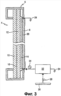 В одном варианте осуществления настоящего изобретения сопротивление резистивного покрытия 20 не превосходит 50 Ом на единицу площади, например, не превосходит 25 Ом на единицу площади или не превосходит 10 Ом на единицу площади. Тем не менее, это не надо рассматривать, как ограничение изобретения. В варианте осуществления изобретения, показанном на фиг.3, слои 8, 10 и 12 выполнены из стекла. Тем не менее, это не надо рассматривать, как ограничение изобретения, так как любой или любые из указанных слоев могут быть выполнены из поликарбоната или другого подходящего прозрачного материала.