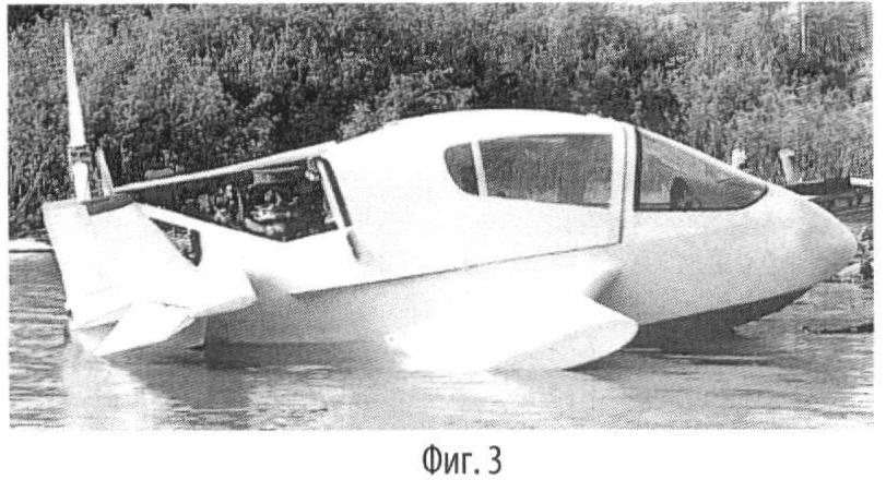 С использованием ДКСПИ построен экспериментальный четырехместный экранолет (фиг.3). Ведущиеся с июня 2007 года испытания экранолета подтвердили способность ДКСПИ работать на углах атаки более 30 градусов и стабилизироваться по тангажу.