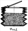 Таким образом, предлагаемая конструкция по сравнению с известными очень удобна в эксплуатации. Во-первых, она во все время до заполнения ее сыпучим материалом находится в сложенном состоянии, а известные складные конструкции после разложения из плоского состояния в объемное рабочее и до момента использования, то есть заполнения материалом, занимают значительный объем. Во-вторых, при частичном опорожнении предлагаемой конструкции она автоматически частично складывается, сокращая тем самым свой объем. И, пожалуй, самое главное – при опорожнении перед помещением в мусорный контейнер предлагаемый резервуар автоматически складывается и занимает минимальный объем, известные же конструкции необходимо человеку складывать, сминать и т.п., что требует дополнительных затрат времени и обычно не делается, приводя к значительным неудобствам при утилизации вследствие загромождения мусорных контейнеров.