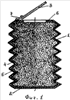 Стоячий складной контейнер для сыпучих материалов состоит из корпуса 1 в виде замкнутой боковой поверхности /последняя может иметь поперечное сечение практически любой формы – круглое, квадратное, прямоугольное и т.п./, а также из жестких дна 2 и верхней крышки 3 /форма последних соответствует поперечному сечению корпуса 1/, при этом корпус 1 имеет жесткое состояние /см. фиг.1/ в полностью заполненном сыпучим материалом 4 контейнере, упругое состояние в вертикальном направлении верхней освобожденной от сыпучего материала 4 части корпуса 1 при его частичном опорожнении /см. фиг.2/, и, наконец, полностью упругое состояние корпуса 1 в вертикальном направлении с прилеганием крышки 3 к дну 2 в порожнем контейнере /см. фиг.3/ /на фиг.1 и фиг.2 крышка 3 показана открытой, на фиг.3 – закрытой, причем естественно, в порожнем контейнере на фиг.3 крышка 2 прилегает к дну 2 через высоту полностью сжатого гофрированного корпуса 1/. Для этого корпус 1 выполнен с горизонтальной гофрировкой пильчатой формы в окружном направлении по всей высоте корпуса 1, то есть в виде гармошки, к наружней поверхности корпуса 1 периодично по всей высоте приклеены исходно растянутые вертикальные полоски 5 из тонкого упругого материала, например из резины /на фиг.1 и фиг.2 показана одна из таких полосок 5, попавшая в продольный центральный разрез/, а сверху по всему внутреннему контуру корпуса 1 прикреплен горизонтальный буртик 6 с прикрепленной к нему с помощью, например, плоского упругого шарнира 7 крышкой 3, в качестве плоского упругого шарнира 7 может быть использован, например, отрезок резиновой пластинки. Гофрированный корпус 1, как и дно 2, крышка 3, буртик 6 выполнены из дешевых материалов, применяемых для изготовления контейнеров: картона, тонкой пластмассы и т.д. При этом дно 2 и буртик 6 могут быть приклеены к торцам гофрированного корпуса 1, а могут быть выполнены заодно с ним путем формовки с одновременным проведением гофрировки. Приклеивание упругих исходно растянутых полосок 5 к гофрированному корпусу 1 осуществляется при растянутых выпрямленных гофрах в специальной фиксирующей оправке. После сушки и освобождения из оправки гофры вместе с полосками 5 под действием последних сжимаются и занимают до заполнения контейнера сыпучим материалом 4 сложенное положение /см. фиг.3/.