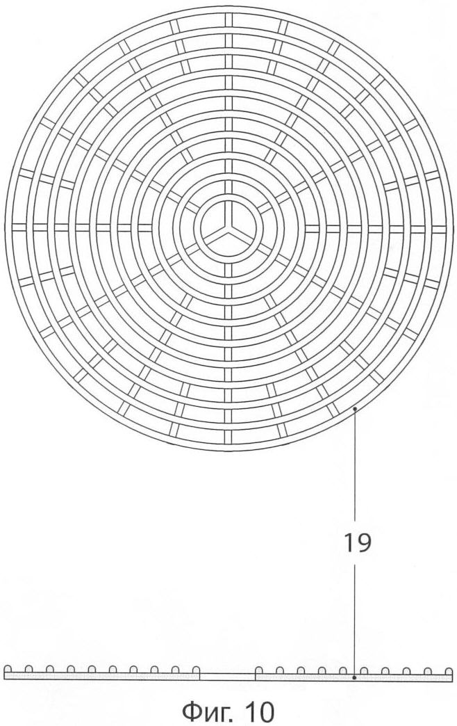 9. Устройство по п.6, отличающееся тем, что для обеспечения равномерного распределения жидкости по всей полости картриджа, а также для регулирования объема наполнителя в картридже, в нижней части нижнего элемента корпуса картриджа расположена дисковая решетка.