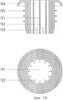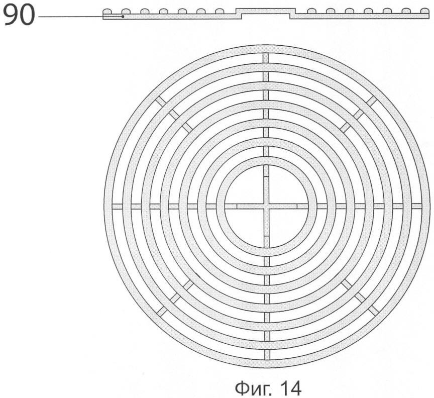 Второй вариант выполнения запорного приспособления представлен на фиг.13-15, в нем используется клапан иной конструкции, реализация которой требует изменения конфигурации нижнего элемента картриджа и дисковой решетки.