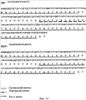На Фиг.2 показаны нуклеотидная последовательность (полоса 2) и трансляции (полоса 1) синтетического кальцитонина (СТ). Ген синтетического кальцитонина был сконструирован с использованием предпочтительного кодона растения. Модификации кодона подчеркнуты в сравнении с геном лососевого СТ дикого типа (полоса 3). Синтетический ген содержит при 5 конце линкерную последовательность, соответствующую сайту расщепления энтерокиназой (ЭК), и удлинен при 3 для получения С-концевого глицина.
