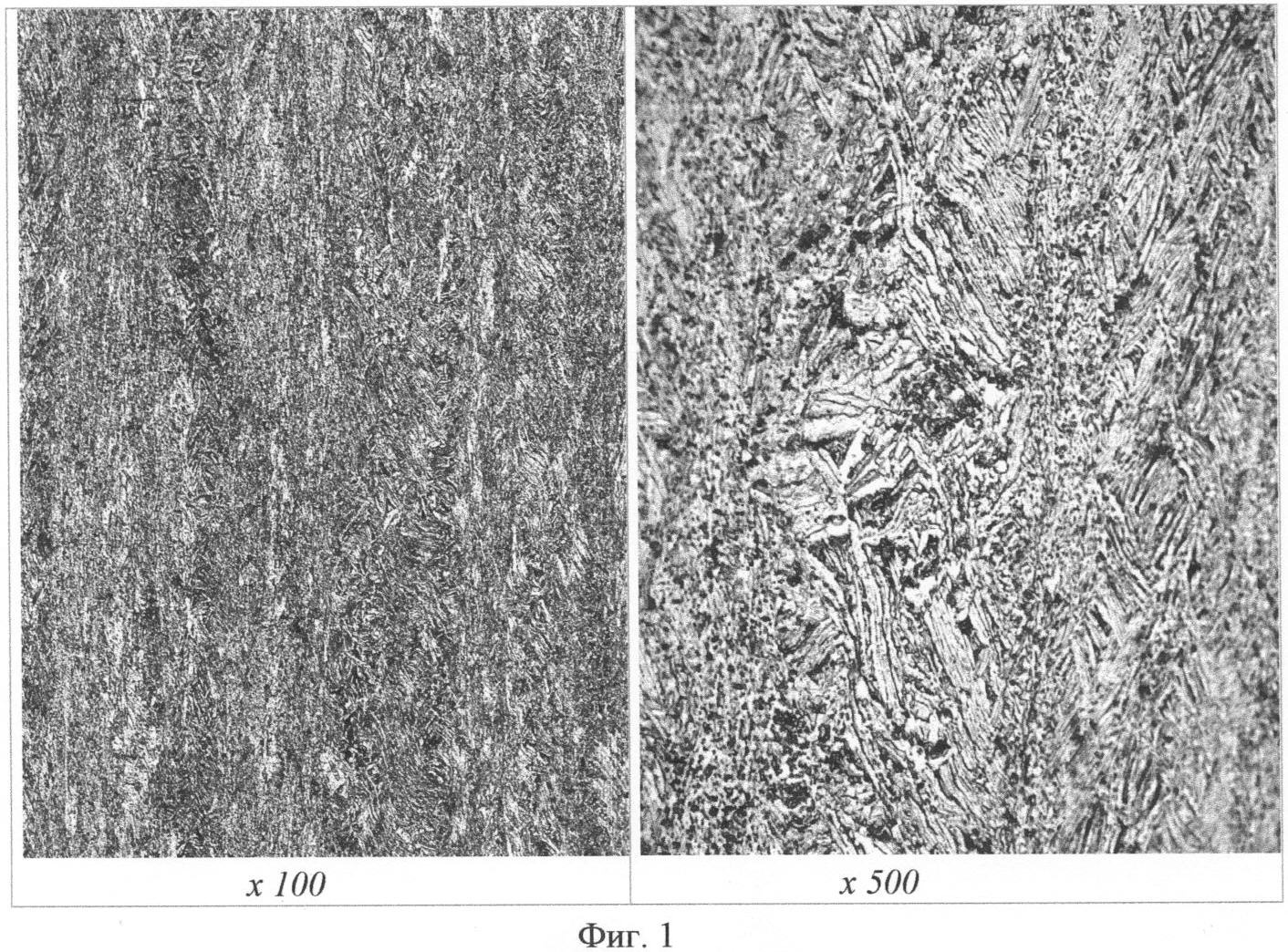 Полученная микроструктура после горячей прокатки и последующего отжига – анизотропная, исходное -зерно вытянуто вдоль направления прокатки, а внутризеренная структура состоит из вторичных -пластин (фиг.1).