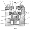 Поскольку клапанное седло 22 выполнено с люфтом, оно давлением жидкости в момент закрытия центрируется и прижимается к клапанной части 21 затвора 20 и таким образом происходит самоуплотнение и герметичное перекрытие потока.