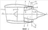 Известный двухконтурный двигатель для самолета, схематично показанный на фиг.1 в разрезе, проходящем через его продольную ось L-L, включает гондолу 1, окружающую спереди отверстие 2 воздухозаборника. Гондола 1 окружает вентилятор 3, центральный генератор горячего потока 4 и кольцевой канал 5 вентилятора для протекания холодного потока.