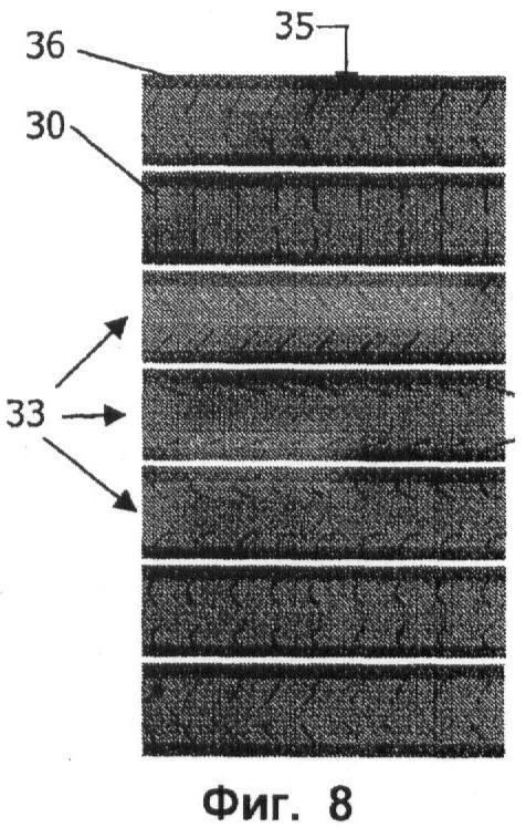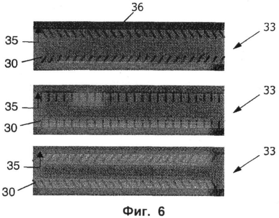 фиг.6 – схему микроканала, внутренняя сторона стенки которого покрыта прямыми полимерными исполнительными элементами, согласно изобретению;