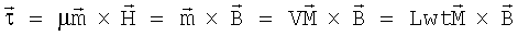 Если предположить, например, что магнитное поле, прикладываемое средством генерирования внешнего магнитного поля к магнитному исполнительному элементу 30, имеет магнитный момент и напряженность магнитного поля, то крутящий момент , действующий на исполнительный элемент 30, можно описать следующим образом: